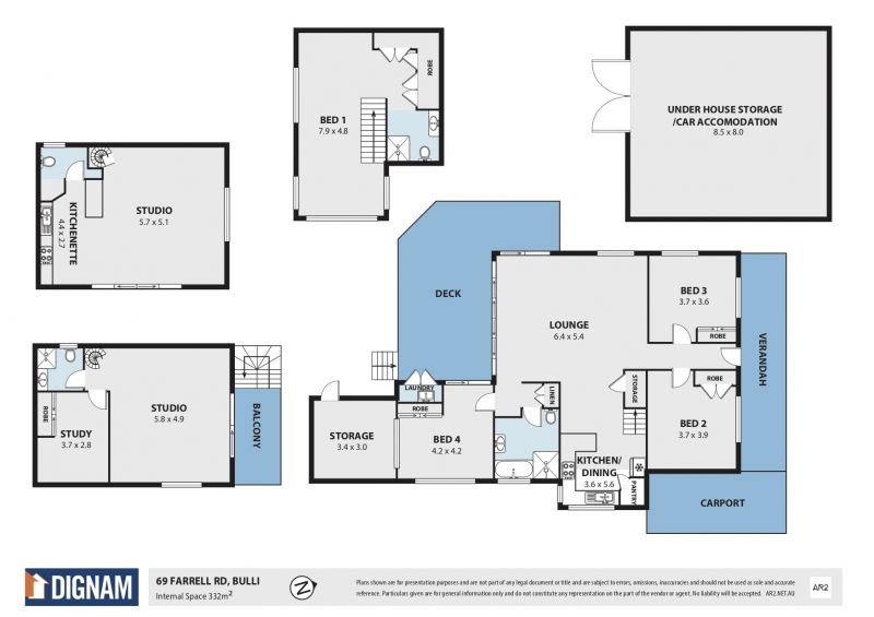 Perched on a substantial 648.6m2 (approx) block and boasting side access, the home also features a separate residence providing versatile living options. The high-set dwelling comprises of a studio/utility room on each floor, a kitchenette, study, bathroom and a powder room.