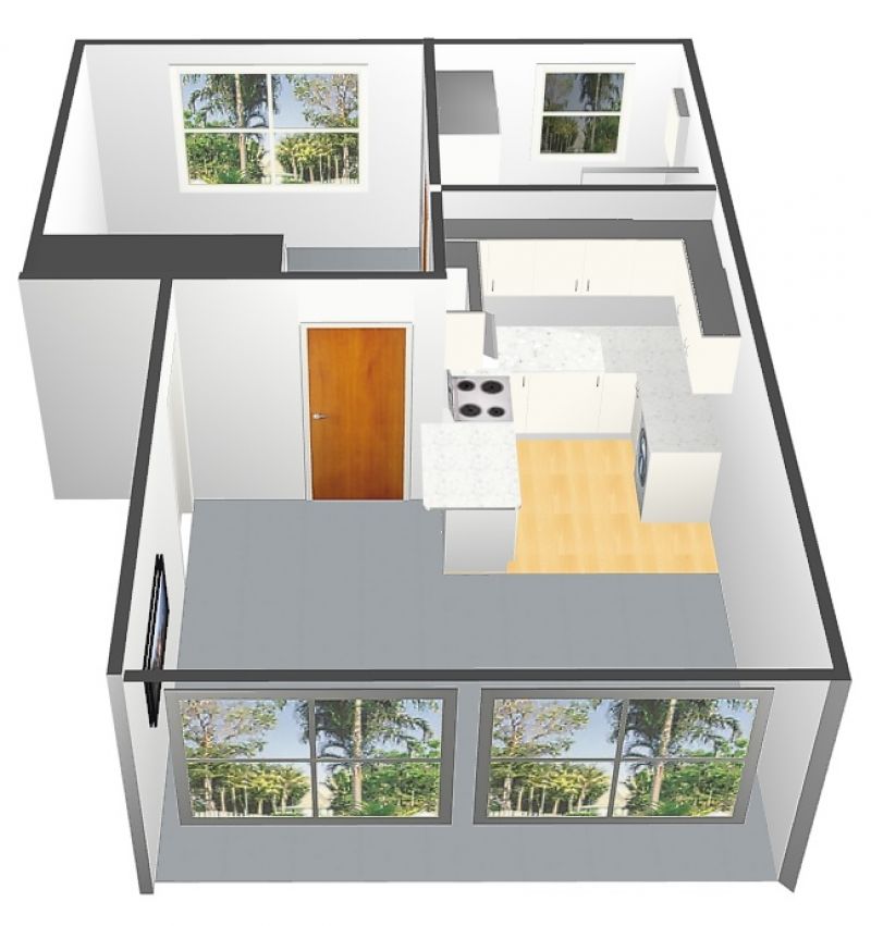 - One good sized bedroom with expansive floor to ceiling built in wardrobe