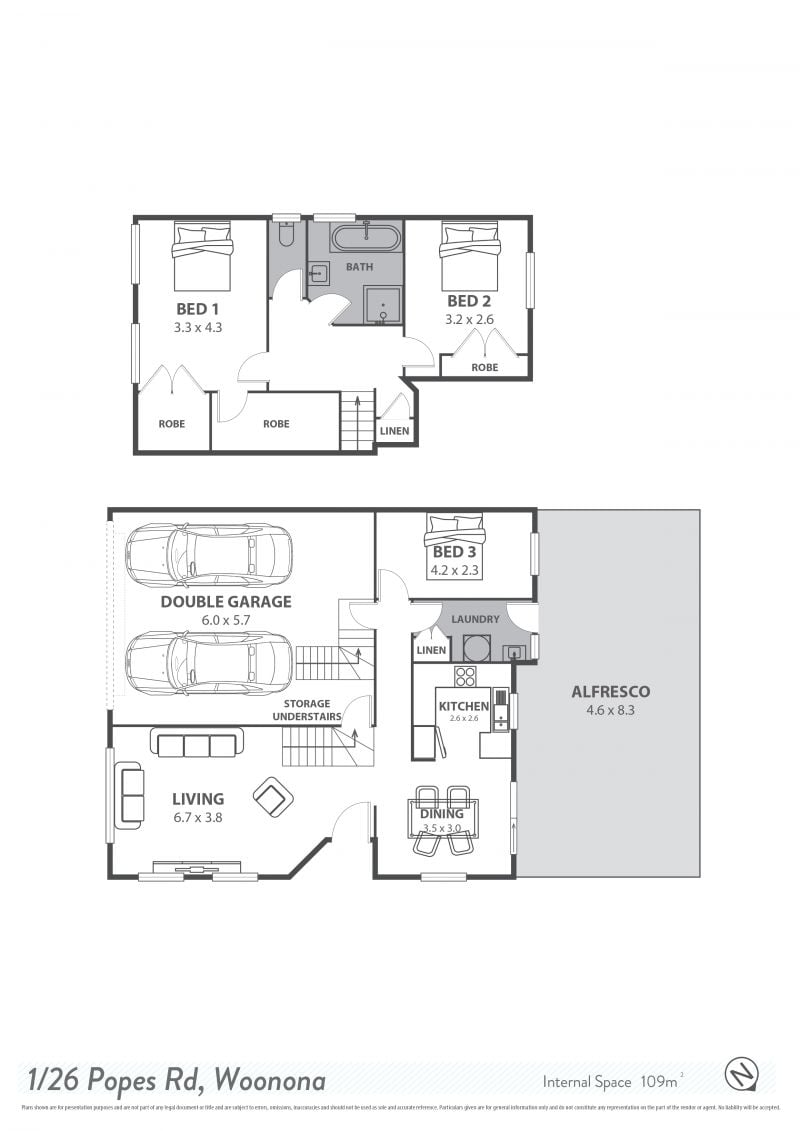 Other highlights include reverse-cycle air-conditioning, a secure double garage with height for loft storage, a walk-in laundry with room potentially for downstairs shower, and handy under-stair storage.