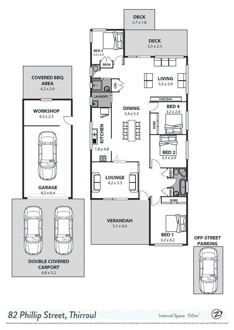 Split-system heating and cooling ensure your comfort, while provision for off-street parking for four cars includes a double carport and a secure garage.