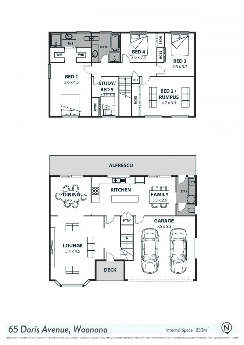 - Upper-Level Retreat: The upper level serves as a peaceful retreat, with plush carpets underfoot. The palatial master bedroom includes his and hers walk-through wardrobes and a contemporary ensuite. Bedroom two is an versatile space that can be used as a second master bedroom, a second living area, media room or kids rumpus room. An additional three bedrooms and family sized bathroom are also located on this floor accommodating even the largest of families with out compromising on comfort or privacy.