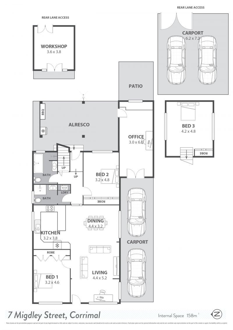 Outdoor Living: Step outside to a partially covered alfresco space, perfect for lazy Sunday brunches, summer BBQs, or evening drinks. The expansive backyard is a blank canvas, ready for your dream garden, kids' play space, or even a second dwelling (STCA) thanks to rear lane access. The property also features a large home office and a carport accommodating up to four vehicles, adding extra practicality to its stylish appeal.