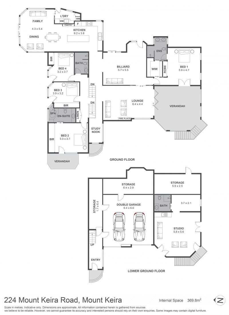 •Architecturally designed dual-level estate encompassing approximately 369sqm of refined internal living